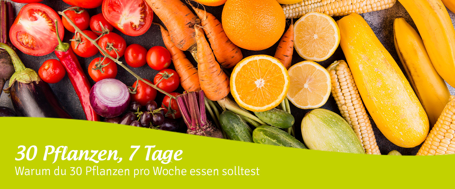 Gemüse, Obst, Vollkorn, Hülsenfrüchte, Nüsse, Samen, Kräuter und Gewürze: Wer eine möglichst große Vielfalt an Pflanzen pro Woche isst...