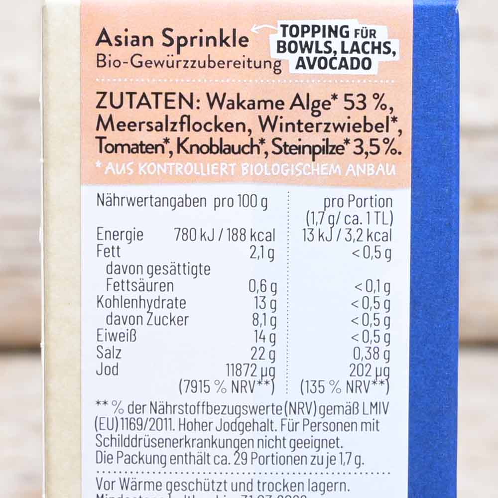 Das Asian Sprinkle Gewürz peppt jedes Gericht auf. Es ist perfekt zum Würzen oder als Topping für Bowls und gegrillten Fisch.
