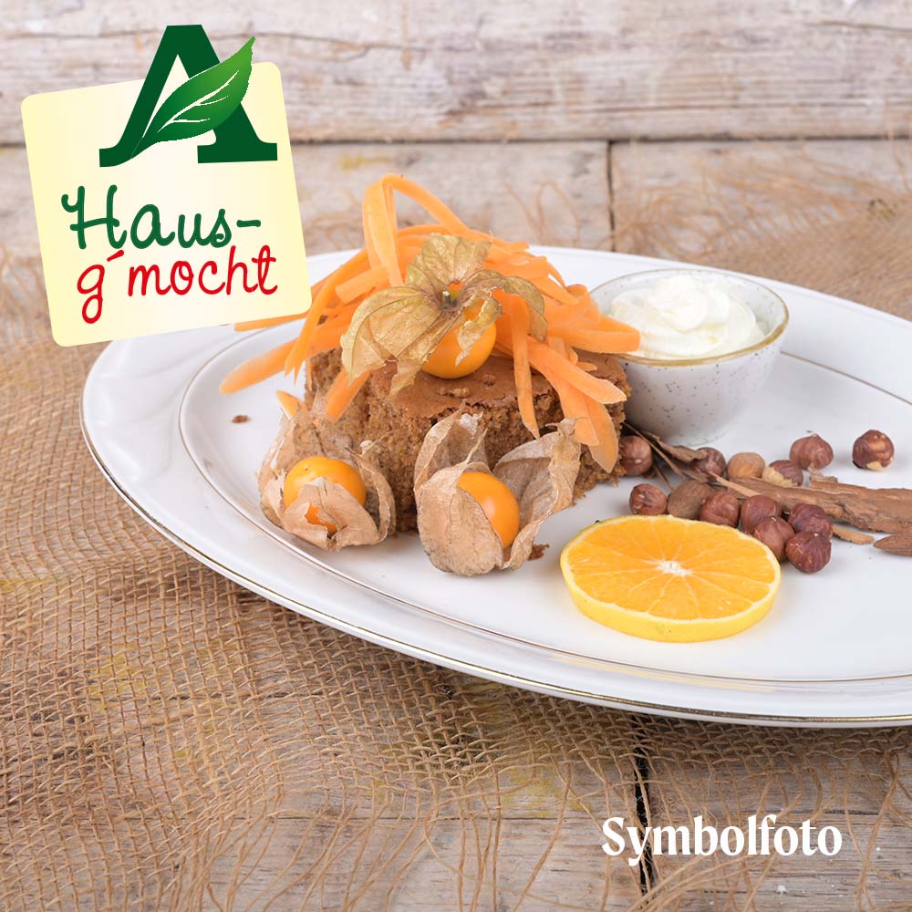 Der saftige Hausg'mochte Karottenkuchen ist mit Liebe gebacken. Ein Genuss zu jeder Tageszeit.