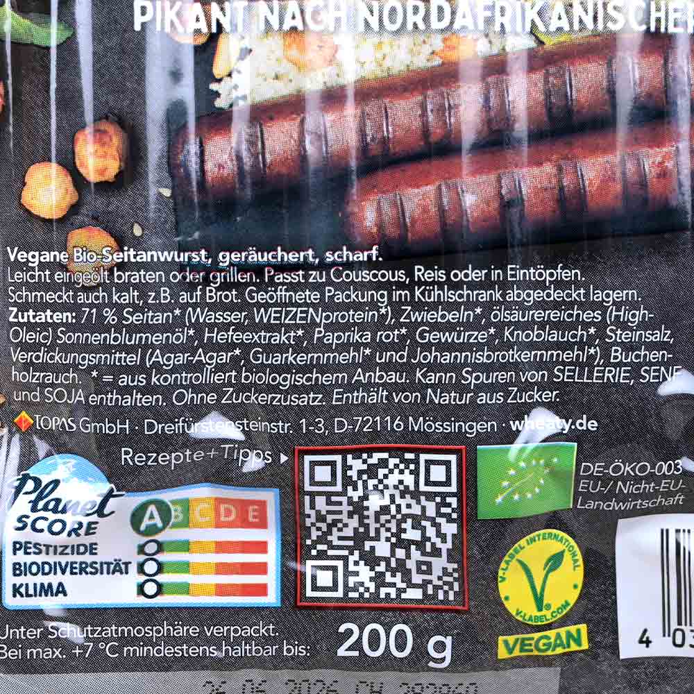 Das Merguez Vegan kommt aus der nordafrikanischen Küche. Sie schmeckt scharf und würzig und ist vielseitig einsetzbar.