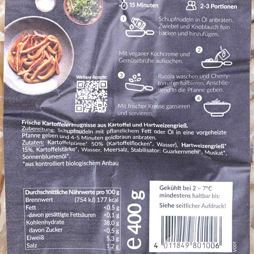 Die veganen Schupfnudeln eignen sich perfekt als Beilage für Fleisch- oder Gemüsegerichte. Kurz goldbraun anbraten und gleich verwenden.