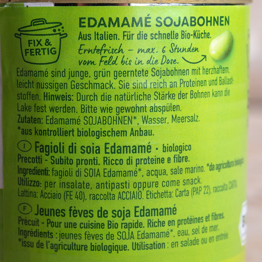 Die Sojabohnen Edamamé sind knackig und mild-nussig im Geschmack. Reich an pflanzlichen Eiweiß sind sie auch perfekt als Snack geeignet.