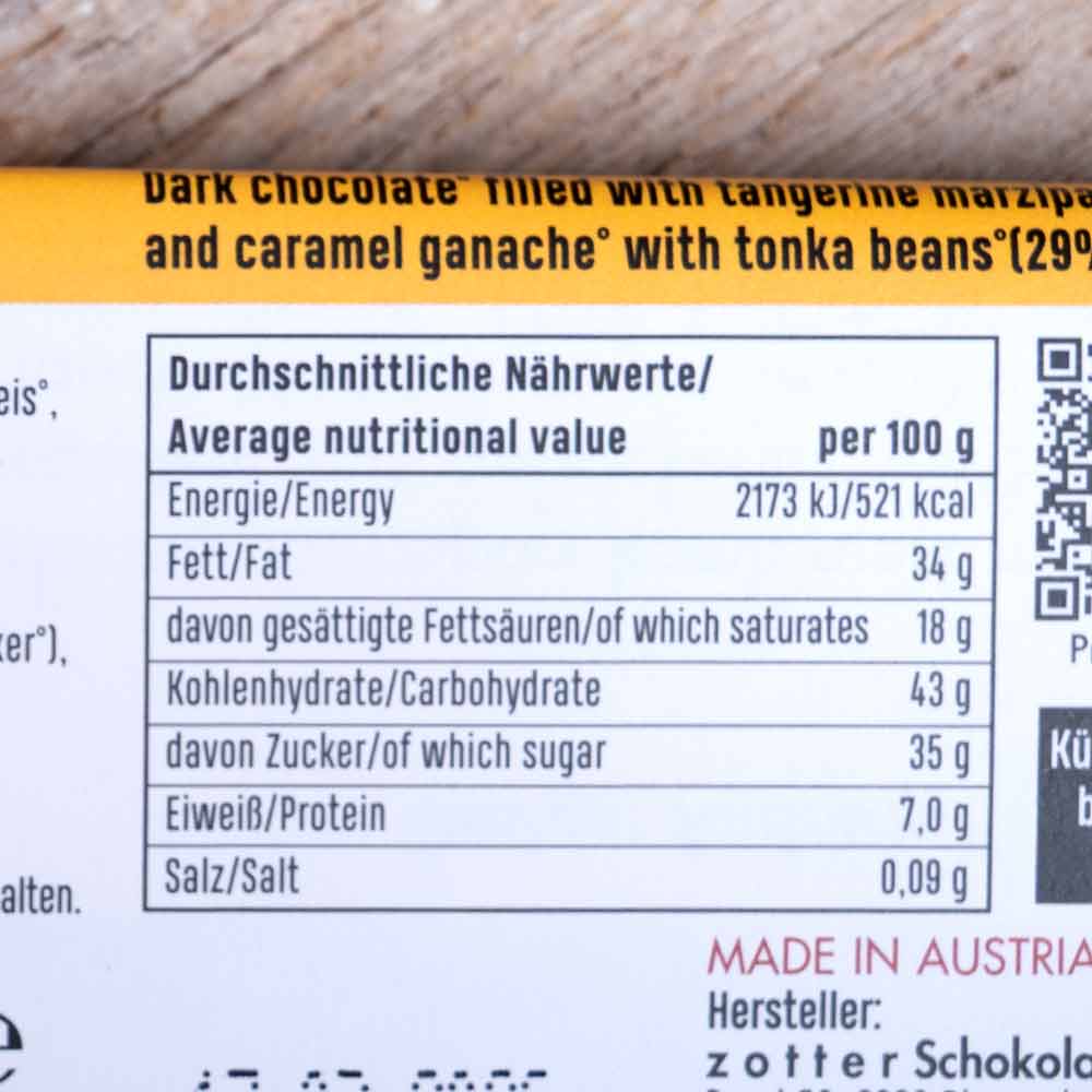 Die Süße Nikolo Schokolade kombiniert ein fruchtiges Mandarinenmarzipan mit einer feinen Karamellschicht und einem Hauch Tonkabohne.