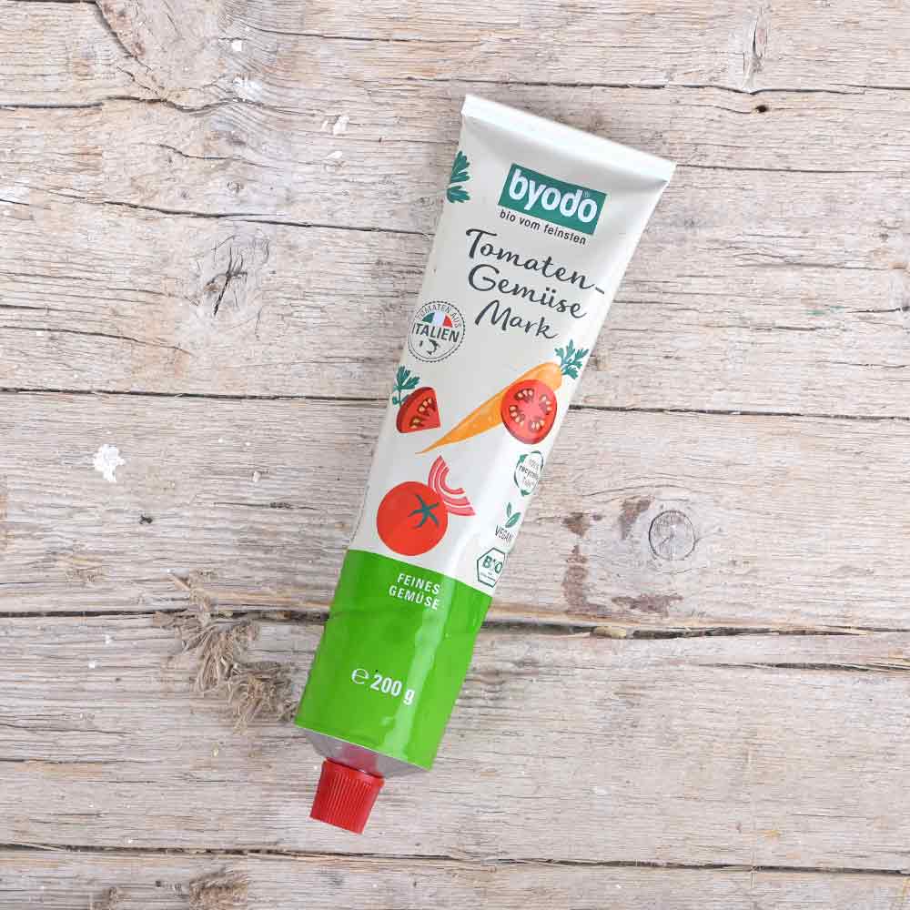 Das Tomaten Gemüsemark ist die perfekte Basis für Saucen oder fruchtige Dips. Sie passt perfekt zu Pastagerichten oder auch auf Pizza.