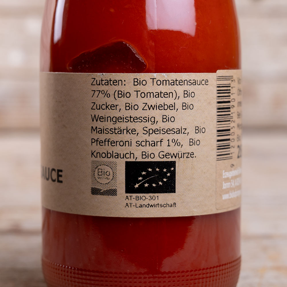 Für die Tomaten Würzsauce mild werden sonnengereifte Tomaten mit mehreren Zutaten zu einer feinen Sauce verarbeitet.