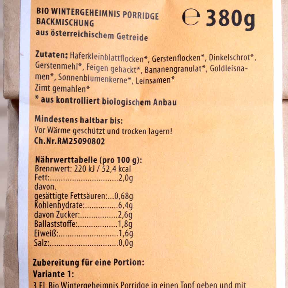 Der Wintergeheimnis Porridge mit feinen Bananenflocken und getrockneten Feigen sorgt für die richtige Vorfreude auf das heilige Fest.